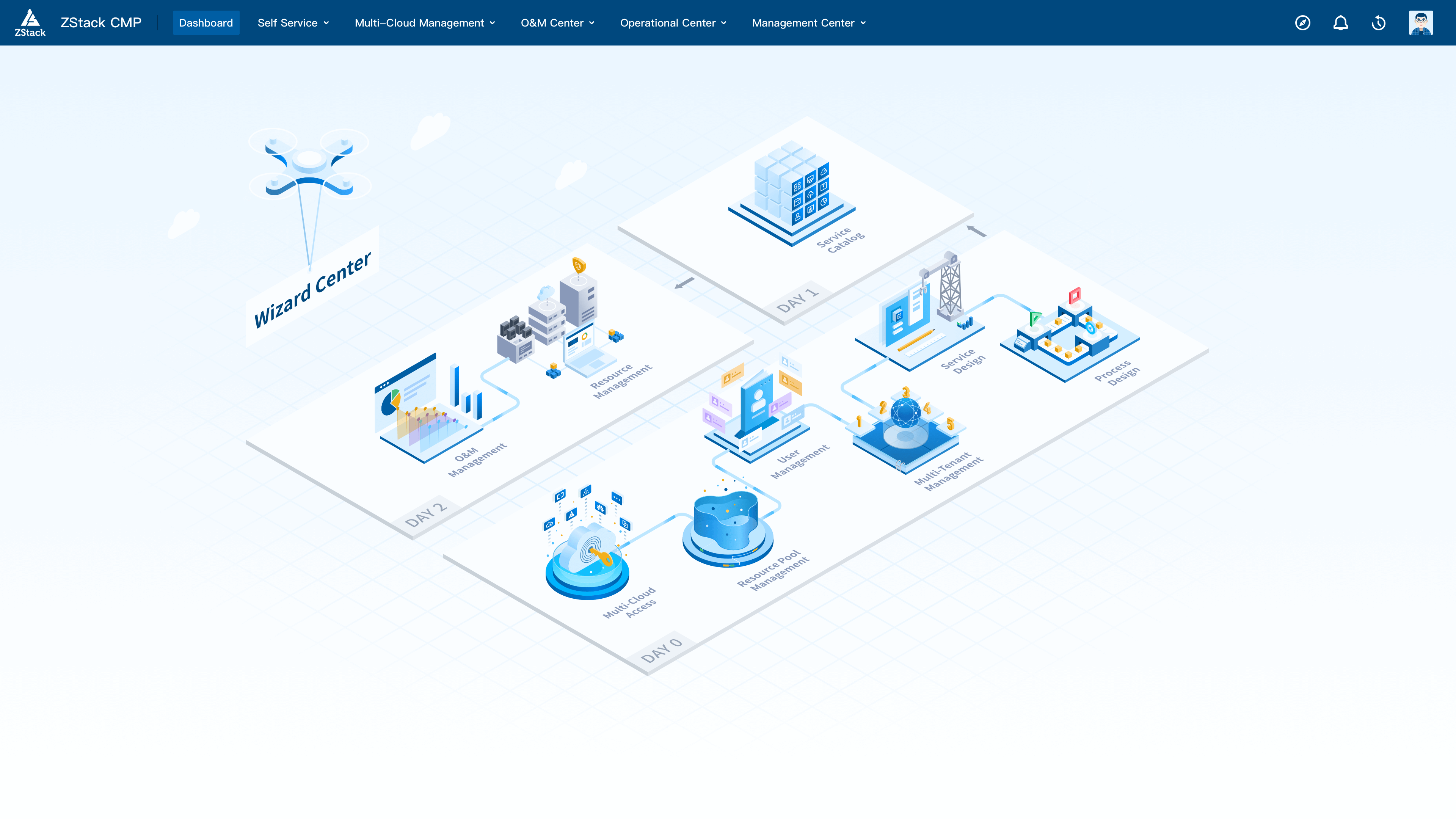 ZStack CMP обеспечивает полное упражнение жизненным циклом: от доступа, активации и использования мультиоблачных ресурсов до их планирования, предоставления услуг, развертывания приложений, гарантии эксплуатации и обслуживания, выставления счетов за ресурсы и их повторного использования.